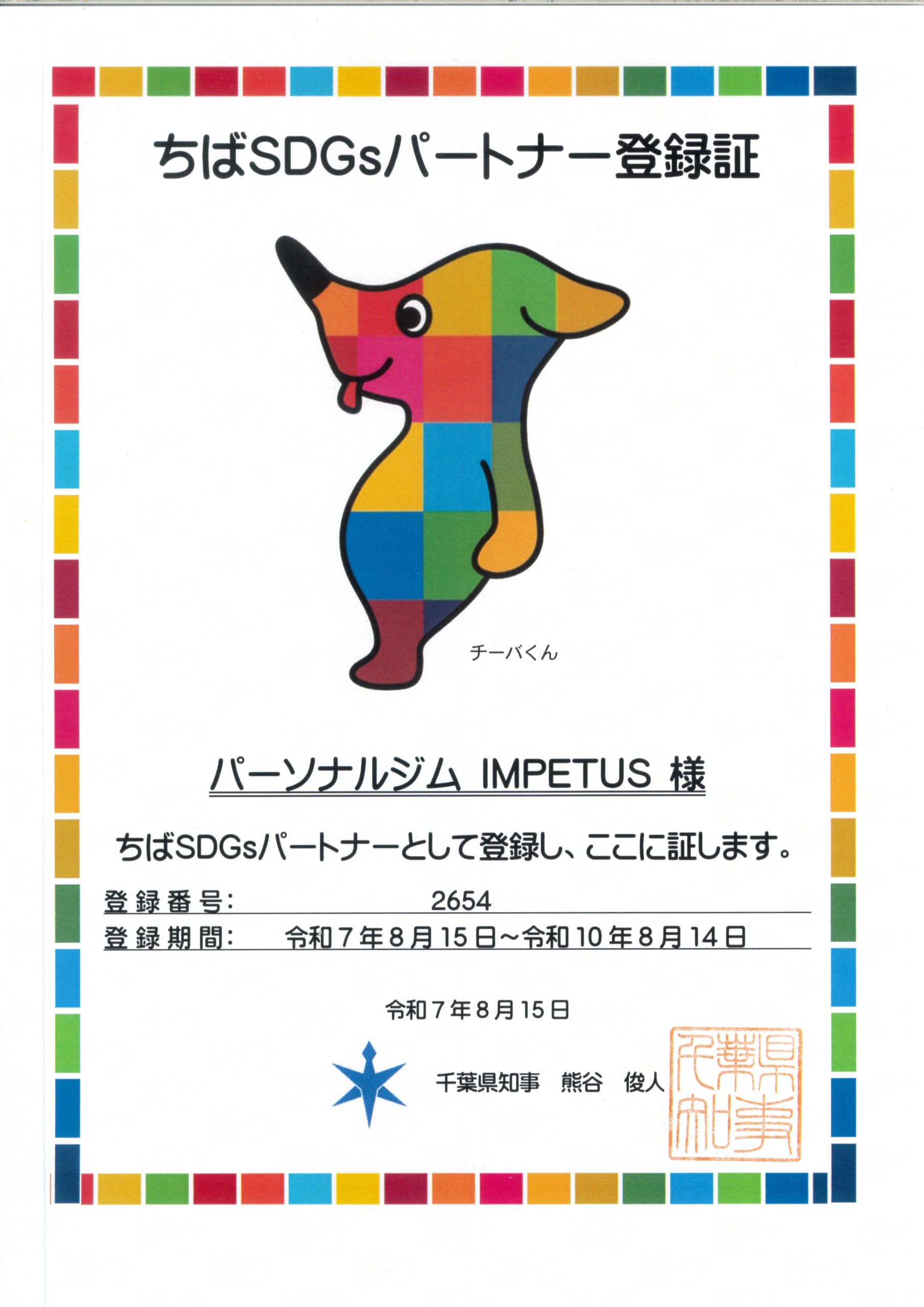 この度、IMPETUSは、千葉県が推進する「ちばSDGsパートナー登録制度」において、SDGs(持続可能な開発目標)の達成に積極的に取り組む企業として、正式にパートナー登録されましたことをご報告いたします。(登録番号:[2654])